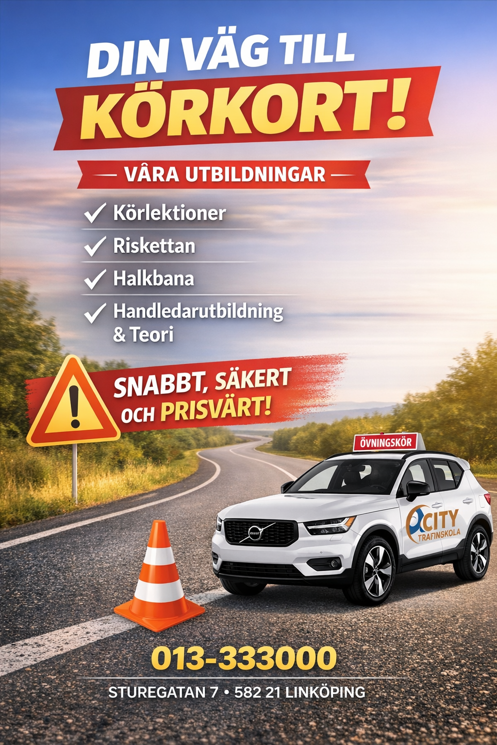 Är du redo att komma igång? Boka din körlektion hos City Trafikskola Linköping och ta nästa steg mot ditt körkort.