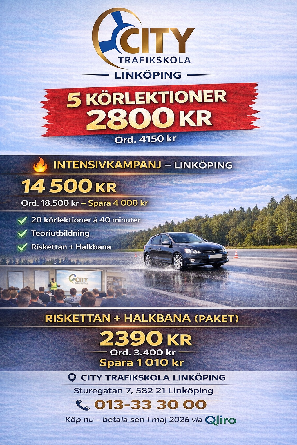 Hos City Trafikskola Linköping får du körlektioner som bygger kunskap, rutin och självförtroende bakom ratten.